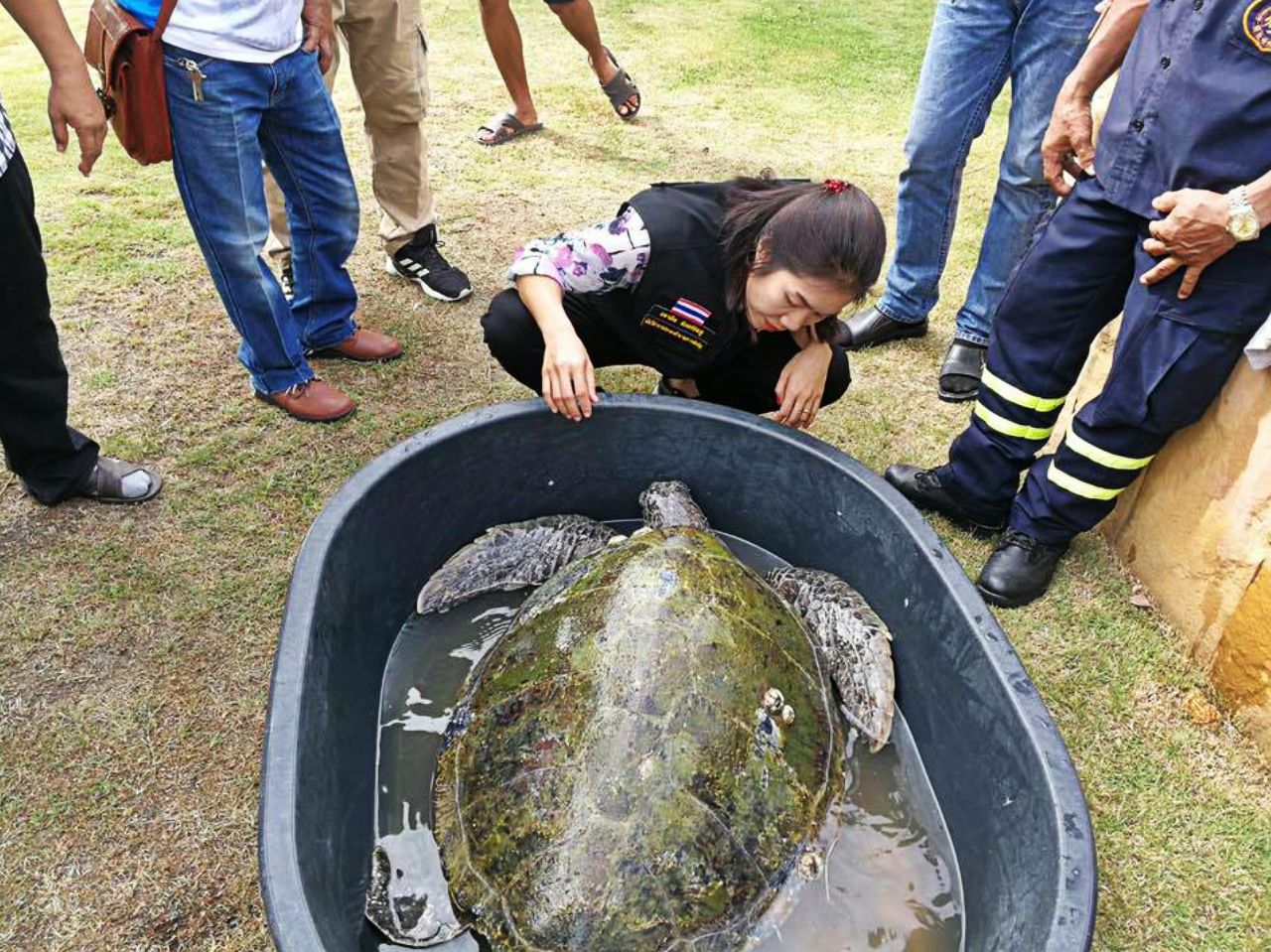 В Чонбури спасли морскую черепаху, которая не хотела возвращаться в море